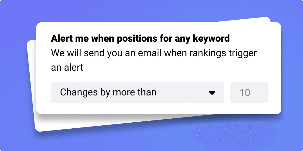 Stay proactive with our "Custom Alerts" feature. This tool sends an email alert when specified changes occur in your rankings, allowing you to react promptly to fluctuations in your SEO performance.
